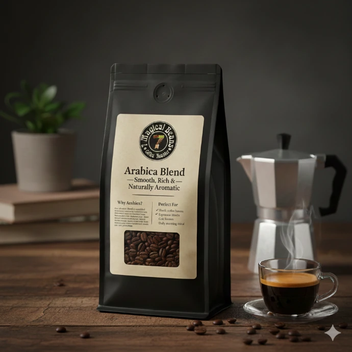 Our Arabica Blend is crafted from premium high-altitude Arabica beans, handpicked for their purity and distinctive flavor. Gently roasted to perfection, this blend delivers a smooth body, subtle sweetness, and a naturally fragrant aroma that fills every cup with comfort.